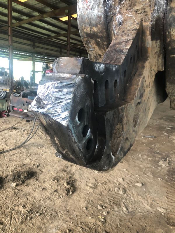 A large part of our business is in the maintenance and repair of mobile shear repairs and attachments. These large hydraulic shears are a great way to quickly process steel, but without the proper maintenance they can be a constant source of frustration. We focus on the importance of basic shear maintenance, such as blade rotations, build weld and hard surface welding. However, we are also experienced in repairing these attachments when they haven’t been properly maintained,